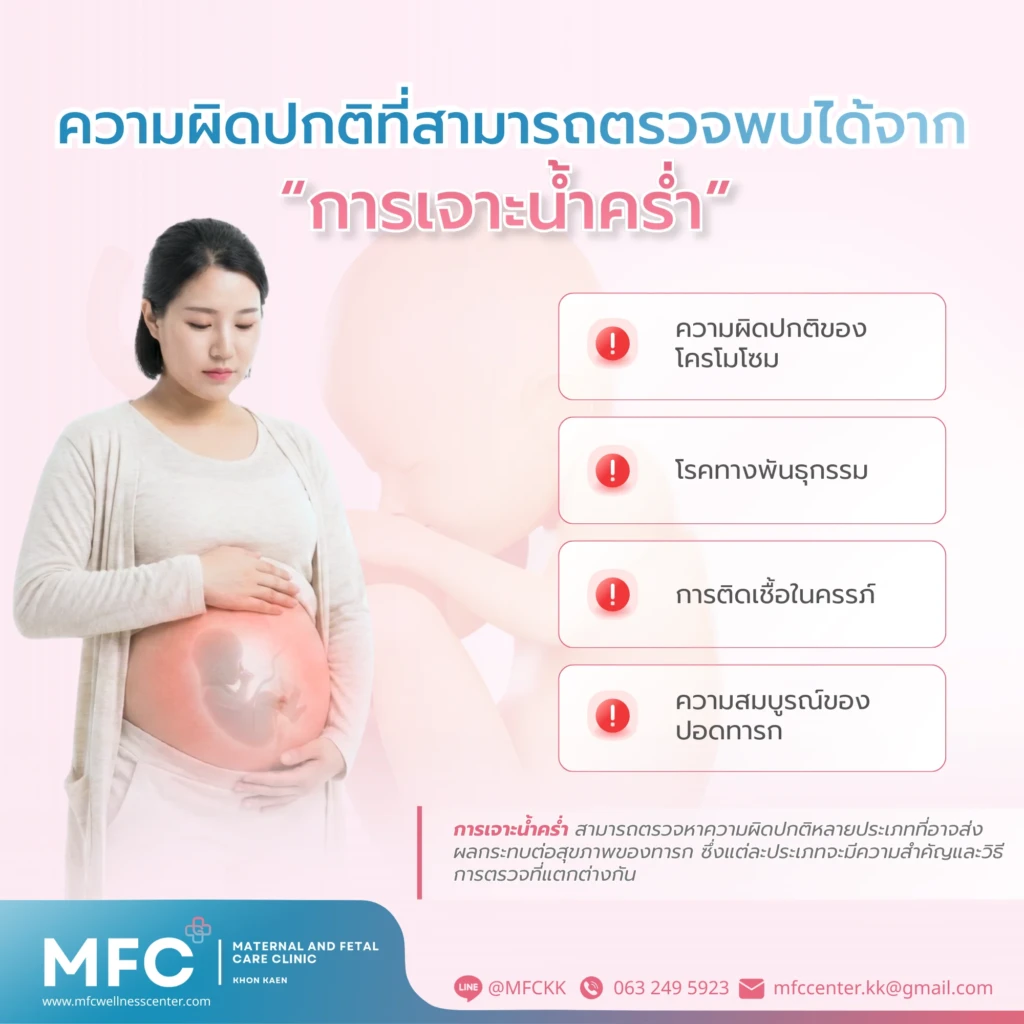การเจาะน้ำคร่ำเป็นหัตถการตรวจวินิจฉัยก่อนคลอดที่ให้ผลแม่นยำสูงในการตรวจหาความผิดปกติของโครโมโซมและโรคทางพันธุกรรม แม้จะมีความเสี่ยงบางประการแต่ก็ถือว่าต่ำและสามารถควบคุมได้ด้วยความชำนาญของแพทย์ การตรวจนี้เหมาะสำหรับคุณแม่กลุ่มเสี่ยง เช่น อายุ 35 ปีขึ้นไป มีประวัติครอบครัวเป็นโรคทางพันธุกรรม หรือผลการตรวจคัดกรองแสดงความเสี่ยงสูง สำหรับคุณแม่ที่กังวลเจาะน้ำคร่ำเจ็บไหม อาการเจ็บจะเป็นชั่วคราวและทนได้ ส่วนเจาะน้ำคร่ำกี่วันรู้ผลโดยทั่วไปใช้เวลาสองถึงสามสัปดาห์ หากต้องการข้อมูลเพิ่มเติมสามารถติดต่อสอบถามได้ที่ MFC Clinic เพื่อรับคำปรึกษาจากแพทย์ผู้ชำนาญการโดยตรง