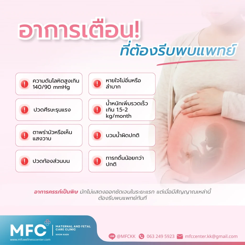 ภาวะครรภ์เป็นพิษเป็นภัยเงียบที่คุณแม่ตั้งครรภ์ต้องเฝ้าระวัง เพราะอาการครรภ์เป็นพิษเริ่มแรกมักไม่แสดงออกชัดเจน แต่หากปล่อยไว้อาจส่งผลร้ายแรงถึงชีวิตทั้งแม่และลูก ภาวะนี้เกิดขึ้นได้กับคุณแม่ตั้งครรภ์ทุกคน โดยเฉพาะกลุ่มที่มีปัจจัยเสี่ยง การฝากครรภ์สม่ำเสมอและตรวจติดตามอย่างใกล้ชิดจึงมีความสำคัญอย่างยิ่ง โดย MFC Clinic คลินิกเวชศาสตร์มารดาและทารกในครรภ์