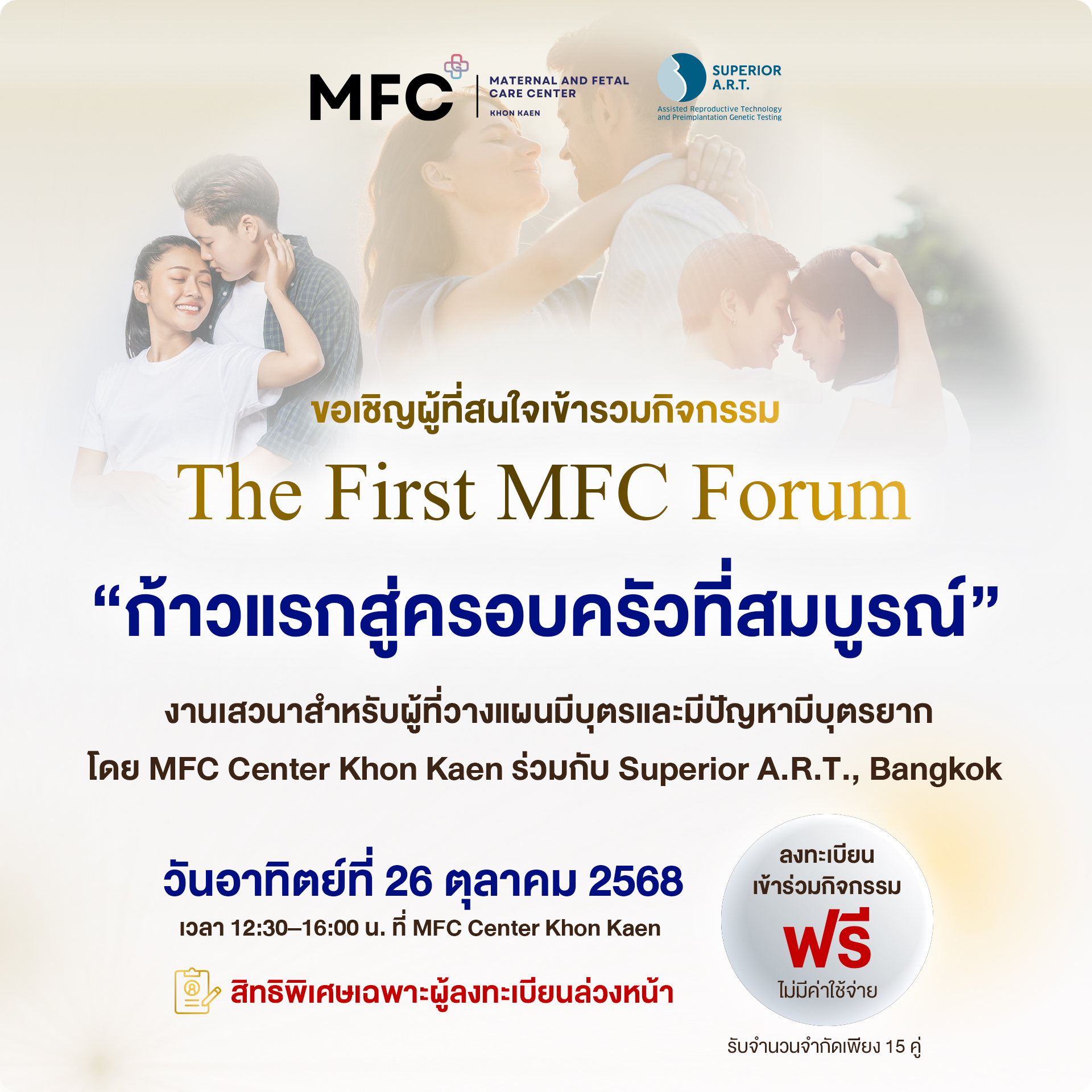 The First MFC Forum “ก้าวแรกสู่ครอบครัวที่สมบูรณ์” งานเสวนาสำหรับผู้วางแผนมีบุตรและมีปัญหามีบุตรยาก